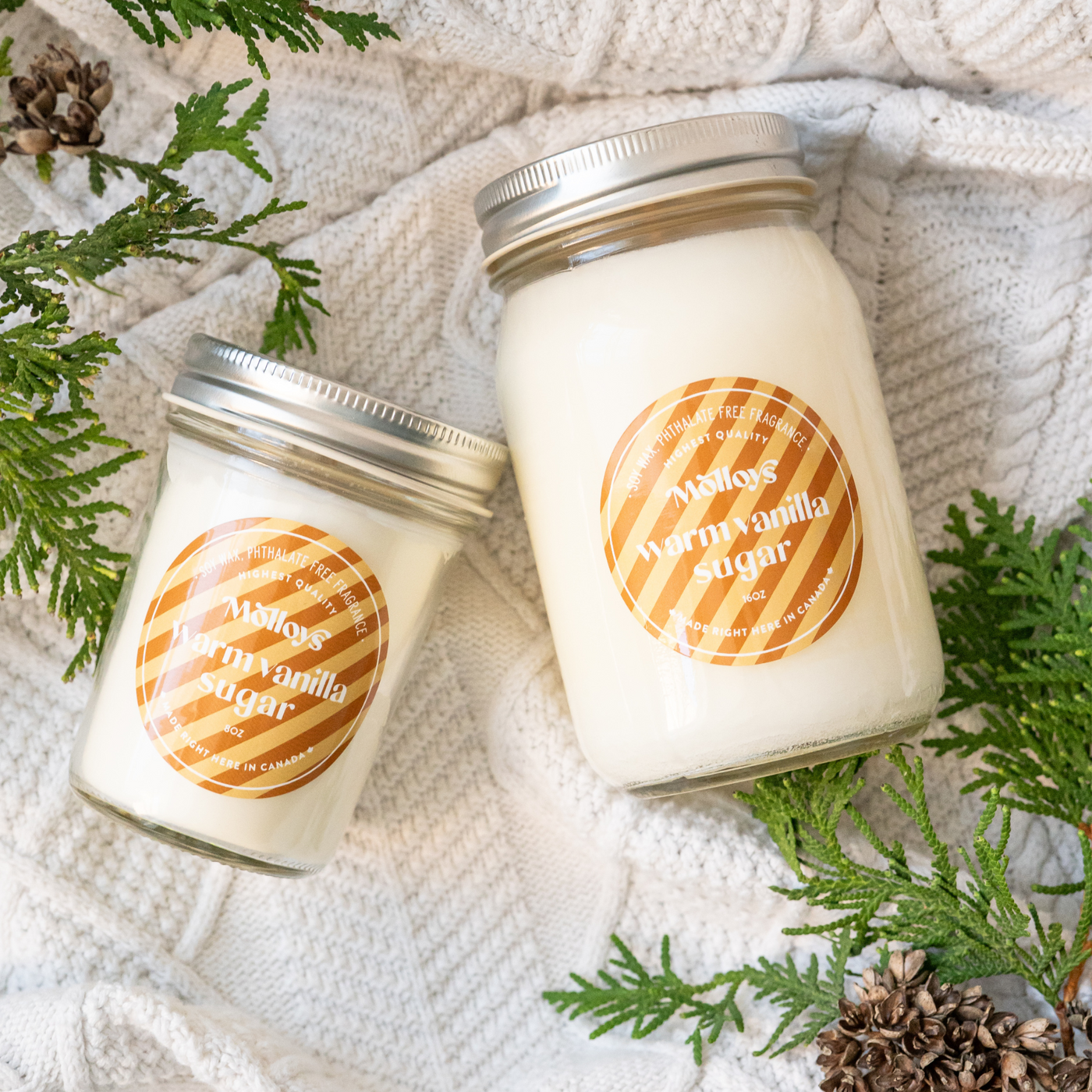 {"id":7023431090367,"title":"Holiday Candles","handle":"holiday-candles","description":"\u003cp data-mce-fragment=\"1\"\u003e\u003cspan\u003eOur candles are made with 100% natural Soy Wax and are hand-poured in Cambridge.  \u003c\/span\u003e\u003c\/p\u003e\n\u003cp data-mce-fragment=\"1\"\u003e\u003cspan\u003eThese holiday scented candles are great for a cozy and warm winter season.\u003c\/span\u003e\u003c\/p\u003e\n\u003cp data-mce-fragment=\"1\"\u003e\u003cspan\u003eScent options are:\u003c\/span\u003e\u003c\/p\u003e\n\u003cul\u003e\n\u003cli\u003e\u003cspan\u003eWarm Vanilla Sugar\u003c\/span\u003e\u003c\/li\u003e\n\u003cli\u003e\u003cspan\u003eWhipped Hot Cocoa\u003c\/span\u003e\u003c\/li\u003e\n\u003cli\u003e\u003cspan\u003ePeppermint\u003c\/span\u003e\u003c\/li\u003e\n\u003cli\u003e\u003cspan\u003eFresh Cut Christmas Tree\u003c\/span\u003e\u003c\/li\u003e\n\u003c\/ul\u003e\n\u003cp data-mce-fragment=\"1\"\u003e\u003cspan\u003e8oz candle will burn approx 40 hours.\u003c\/span\u003e\u003c\/p\u003e\n\u003cp data-mce-fragment=\"1\"\u003e\u003cspan\u003e\u003cbr\u003e\u003c\/span\u003e\u003c\/p\u003e","published_at":"2025-11-06T11:49:14-05:00","created_at":"2021-10-15T16:00:30-04:00","vendor":"Molloys","type":"","tags":[],"price":1600,"price_min":1600,"price_max":8500,"available":true,"price_varies":true,"compare_at_price":null,"compare_at_price_min":0,"compare_at_price_max":0,"compare_at_price_varies":false,"variants":[{"id":40888257052863,"title":"Whipped Hot Cocoa 8oz","option1":"Whipped Hot Cocoa 8oz","option2":null,"option3":null,"sku":"","requires_shipping":true,"taxable":true,"featured_image":{"id":43193115017464,"product_id":7023431090367,"position":5,"created_at":"2024-11-02T15:43:23-04:00","updated_at":"2024-11-02T15:43:25-04:00","alt":null,"width":2048,"height":2048,"src":"\/\/www.molloys.ca\/cdn\/shop\/files\/xmas_web_pics_5.png?v=1730576605","variant_ids":[40888257052863,43440850010360]},"available":true,"name":"Holiday Candles - Whipped Hot Cocoa 8oz","public_title":"Whipped Hot Cocoa 8oz","options":["Whipped Hot Cocoa 8oz"],"price":1600,"weight":0,"compare_at_price":null,"inventory_quantity":-5,"inventory_management":null,"inventory_policy":"deny","barcode":"","featured_media":{"alt":null,"id":35292906553592,"position":5,"preview_image":{"aspect_ratio":1.0,"height":2048,"width":2048,"src":"\/\/www.molloys.ca\/cdn\/shop\/files\/xmas_web_pics_5.png?v=1730576605"}},"requires_selling_plan":false,"selling_plan_allocations":[]},{"id":43440850010360,"title":"Whipped Hot Cocoa 16oz","option1":"Whipped Hot Cocoa 16oz","option2":null,"option3":null,"sku":"","requires_shipping":true,"taxable":true,"featured_image":{"id":43193115017464,"product_id":7023431090367,"position":5,"created_at":"2024-11-02T15:43:23-04:00","updated_at":"2024-11-02T15:43:25-04:00","alt":null,"width":2048,"height":2048,"src":"\/\/www.molloys.ca\/cdn\/shop\/files\/xmas_web_pics_5.png?v=1730576605","variant_ids":[40888257052863,43440850010360]},"available":true,"name":"Holiday Candles - Whipped Hot Cocoa 16oz","public_title":"Whipped Hot Cocoa 16oz","options":["Whipped Hot Cocoa 16oz"],"price":2400,"weight":0,"compare_at_price":null,"inventory_quantity":10,"inventory_management":null,"inventory_policy":"deny","barcode":"","featured_media":{"alt":null,"id":35292906553592,"position":5,"preview_image":{"aspect_ratio":1.0,"height":2048,"width":2048,"src":"\/\/www.molloys.ca\/cdn\/shop\/files\/xmas_web_pics_5.png?v=1730576605"}},"requires_selling_plan":false,"selling_plan_allocations":[]},{"id":40888257085631,"title":"Warm Vanilla Sugar 8oz","option1":"Warm Vanilla Sugar 8oz","option2":null,"option3":null,"sku":"","requires_shipping":true,"taxable":true,"featured_image":{"id":43193080054008,"product_id":7023431090367,"position":4,"created_at":"2024-11-02T15:41:17-04:00","updated_at":"2024-11-02T15:41:18-04:00","alt":null,"width":2048,"height":2048,"src":"\/\/www.molloys.ca\/cdn\/shop\/files\/xmas_web_pics_4.png?v=1730576478","variant_ids":[40888257085631,43440854892792]},"available":true,"name":"Holiday Candles - Warm Vanilla Sugar 8oz","public_title":"Warm Vanilla Sugar 8oz","options":["Warm Vanilla Sugar 8oz"],"price":1600,"weight":0,"compare_at_price":null,"inventory_quantity":-5,"inventory_management":null,"inventory_policy":"deny","barcode":"","featured_media":{"alt":null,"id":35292888236280,"position":4,"preview_image":{"aspect_ratio":1.0,"height":2048,"width":2048,"src":"\/\/www.molloys.ca\/cdn\/shop\/files\/xmas_web_pics_4.png?v=1730576478"}},"requires_selling_plan":false,"selling_plan_allocations":[]},{"id":43440854892792,"title":"Warm Vanilla Sugar 16oz","option1":"Warm Vanilla Sugar 16oz","option2":null,"option3":null,"sku":"","requires_shipping":true,"taxable":true,"featured_image":{"id":43193080054008,"product_id":7023431090367,"position":4,"created_at":"2024-11-02T15:41:17-04:00","updated_at":"2024-11-02T15:41:18-04:00","alt":null,"width":2048,"height":2048,"src":"\/\/www.molloys.ca\/cdn\/shop\/files\/xmas_web_pics_4.png?v=1730576478","variant_ids":[40888257085631,43440854892792]},"available":true,"name":"Holiday Candles - Warm Vanilla Sugar 16oz","public_title":"Warm Vanilla Sugar 16oz","options":["Warm Vanilla Sugar 16oz"],"price":2400,"weight":0,"compare_at_price":null,"inventory_quantity":0,"inventory_management":null,"inventory_policy":"deny","barcode":"","featured_media":{"alt":null,"id":35292888236280,"position":4,"preview_image":{"aspect_ratio":1.0,"height":2048,"width":2048,"src":"\/\/www.molloys.ca\/cdn\/shop\/files\/xmas_web_pics_4.png?v=1730576478"}},"requires_selling_plan":false,"selling_plan_allocations":[]},{"id":40888257118399,"title":"Peppermint 8oz","option1":"Peppermint 8oz","option2":null,"option3":null,"sku":"","requires_shipping":true,"taxable":true,"featured_image":{"id":43193065373944,"product_id":7023431090367,"position":3,"created_at":"2024-11-02T15:39:50-04:00","updated_at":"2024-11-02T15:39:52-04:00","alt":null,"width":2048,"height":2048,"src":"\/\/www.molloys.ca\/cdn\/sho